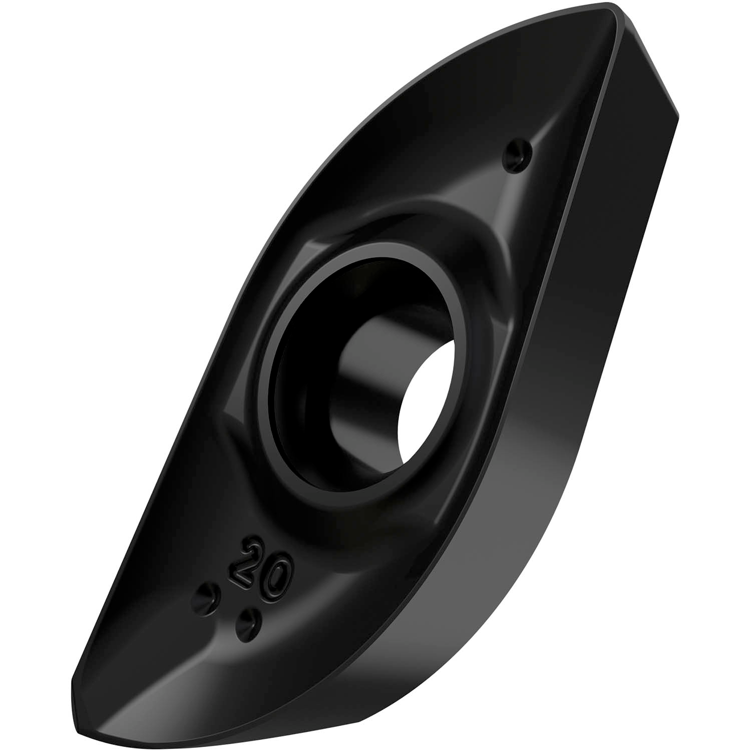 Indexable ball nose segment copy milling insert for a diameter of 20mm for a maximum depth of cut of 17.9mm, M geometry and M8345 PVD coated WC-Co carbide within ISO-grade ranges P30-P50 and M30 -M40 for machining of steel and stainless-steel