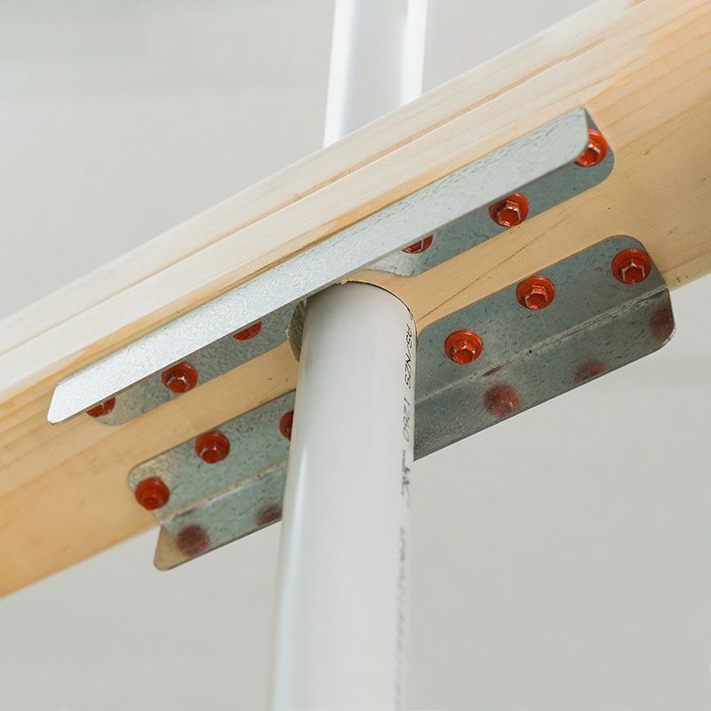 Frame Fix stiffens the timber frame top plate, when a large penetration through the timber is needed for pipes or cables. The two part bracket can be installed before or after the installation and restores the integrity of the frame to meet the various building codes.