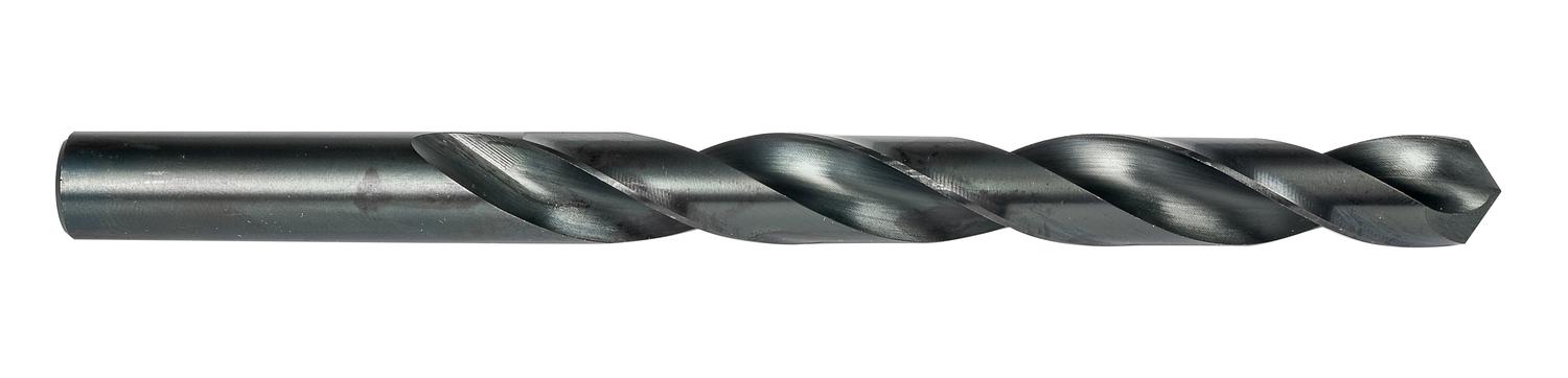 Jobber length drill with straight shank, diameter 0.2380″ (B) with an overall length of 4″ and flute length of 2.3/4″ according to NAS907 Type B standard with 135° heavy duty split point, HSS with steam tempered finish for 4xD drilling without pecking in steel and cast iron