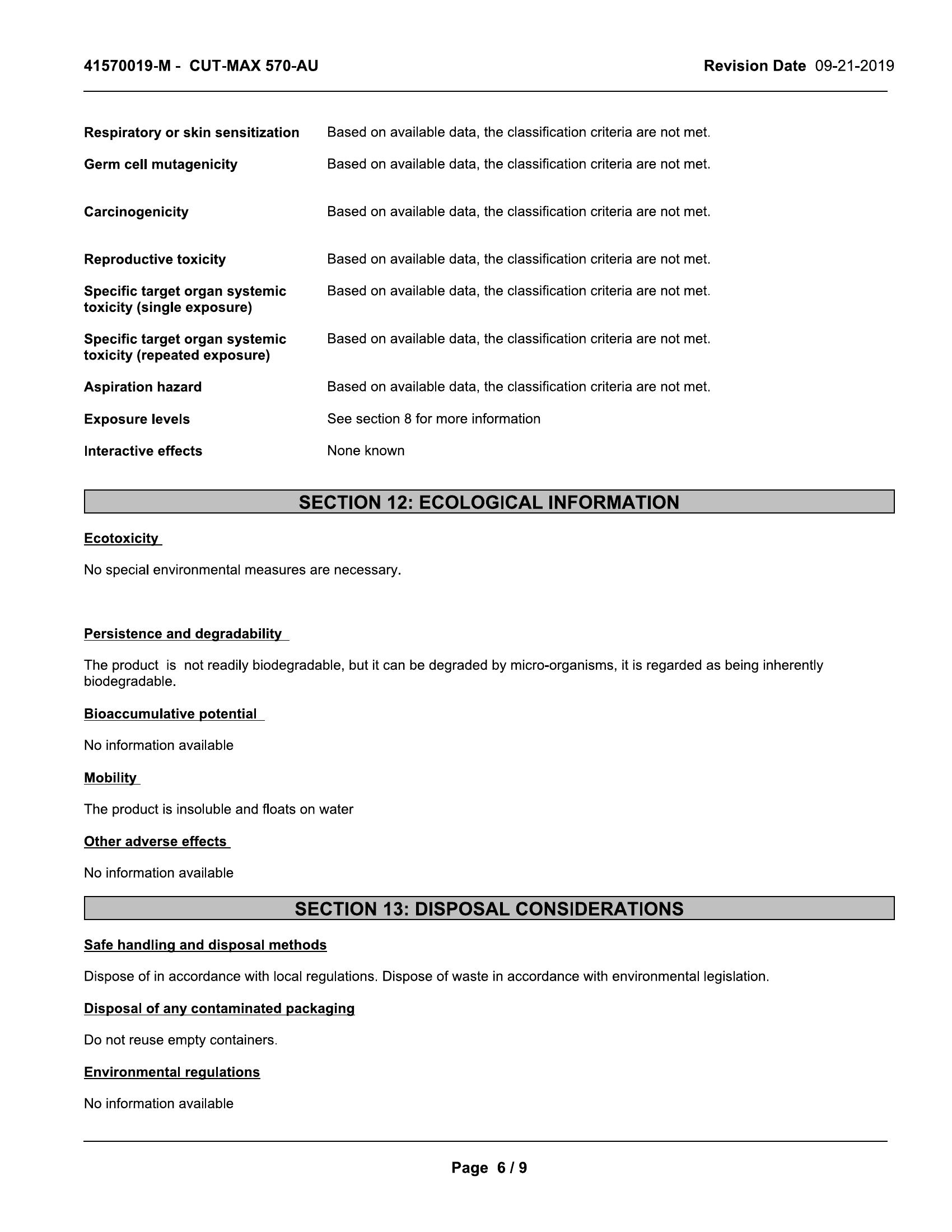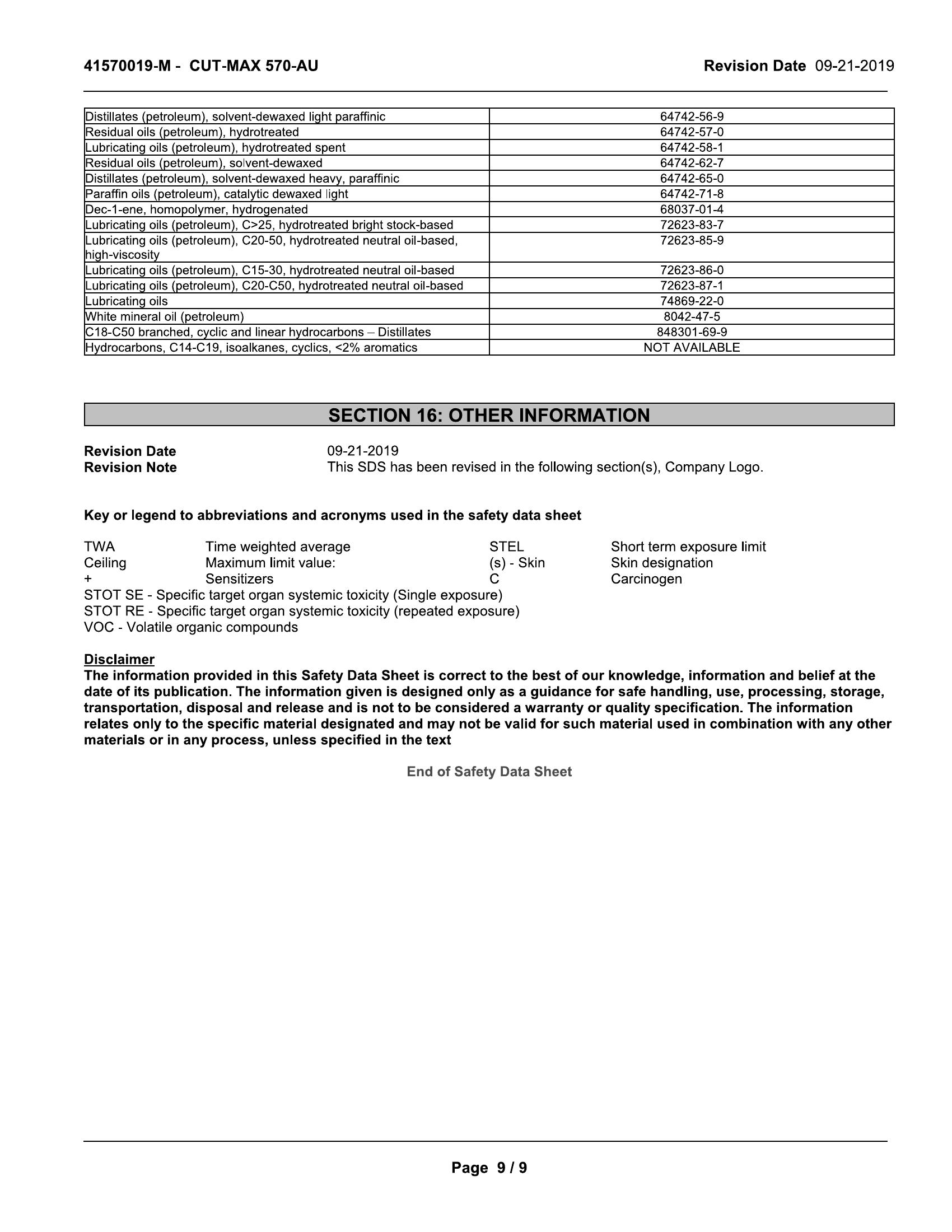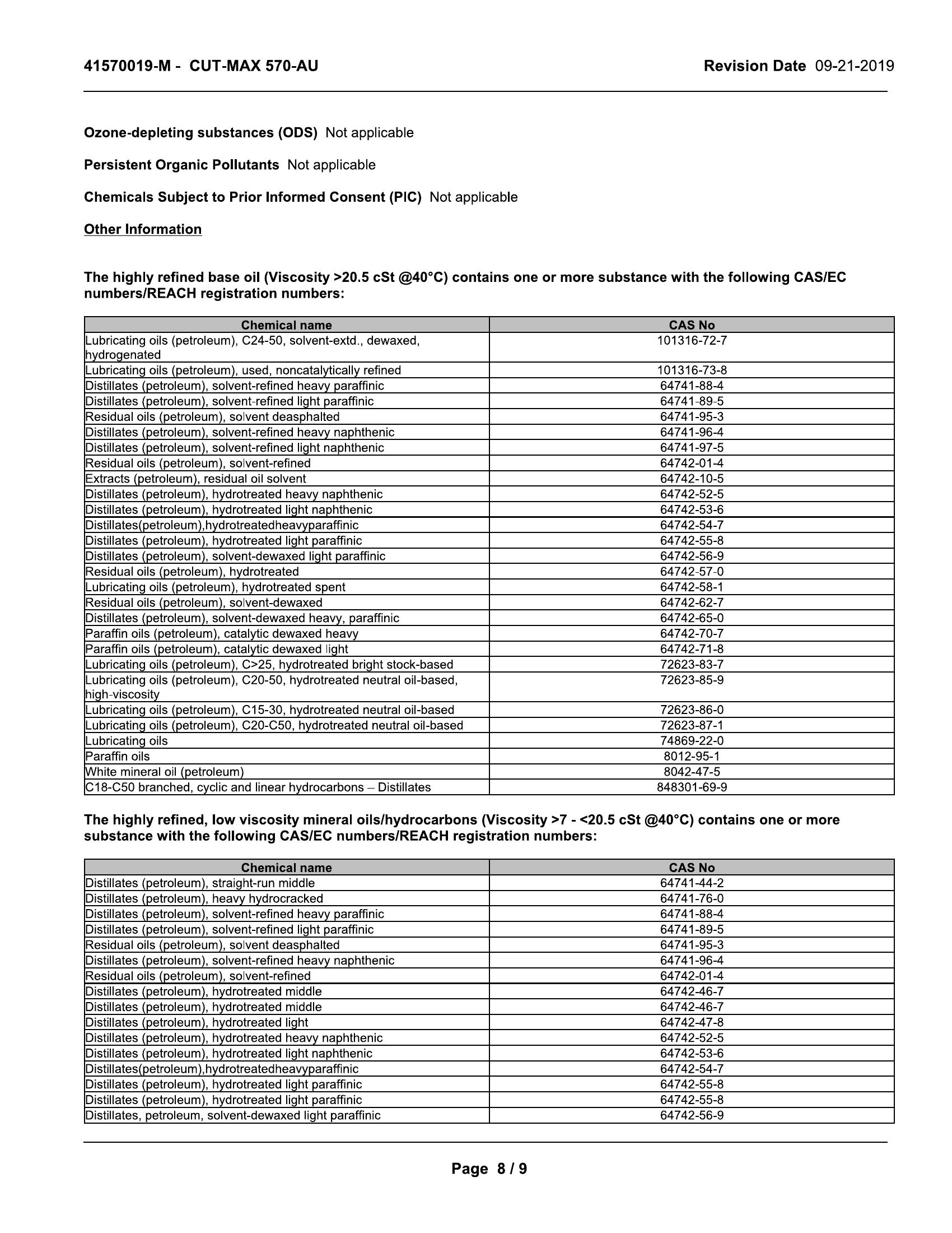 anti-mist additive has been incorporated in CUTMAX® 570-au to help you meet the 5 mg/m3