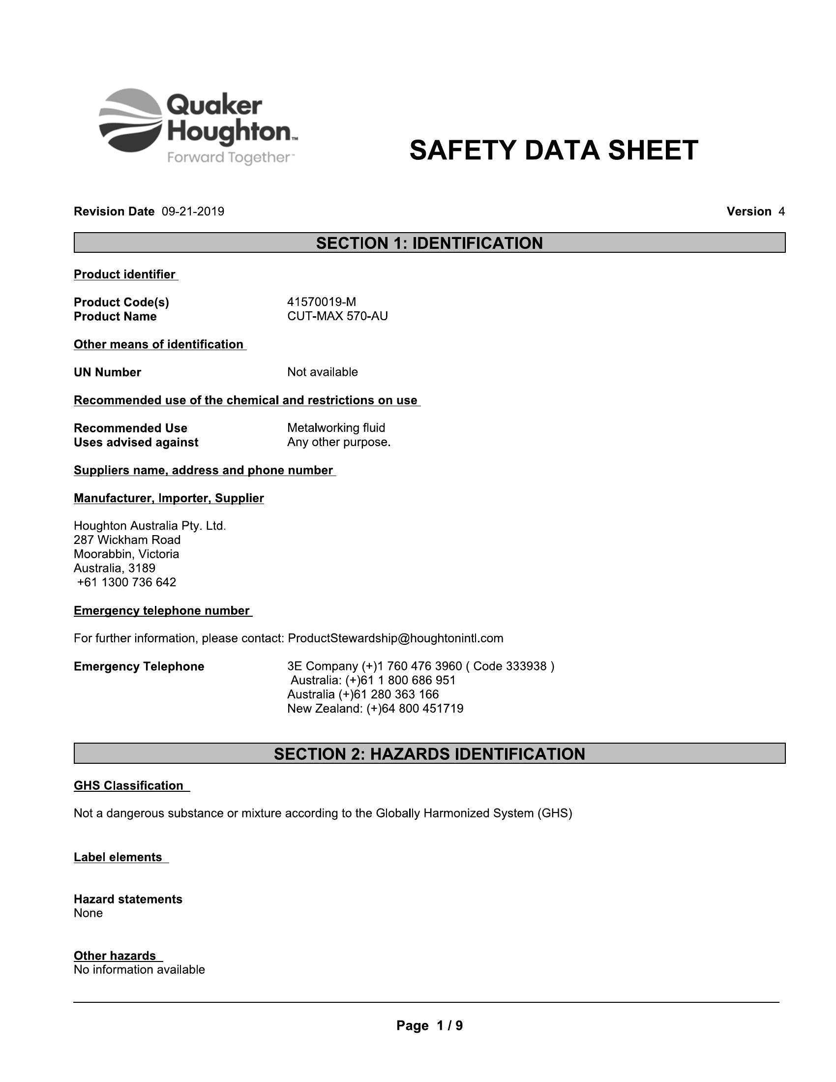 Quaker Houghton CUT-MAX 570 AU 20lt pail
