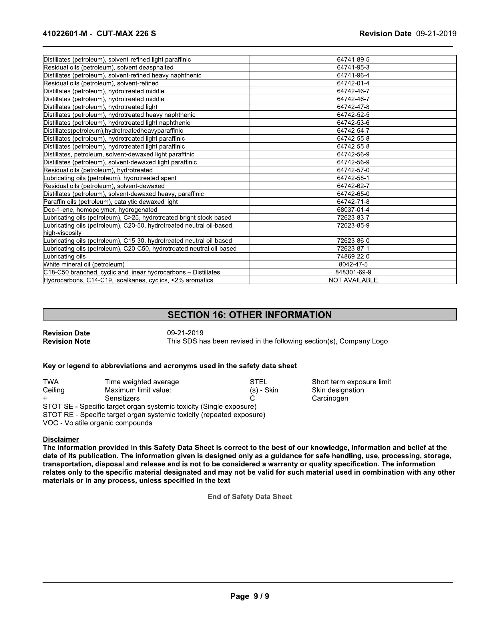 CUT-MAX® 226S is used neat, as supplied for heavy