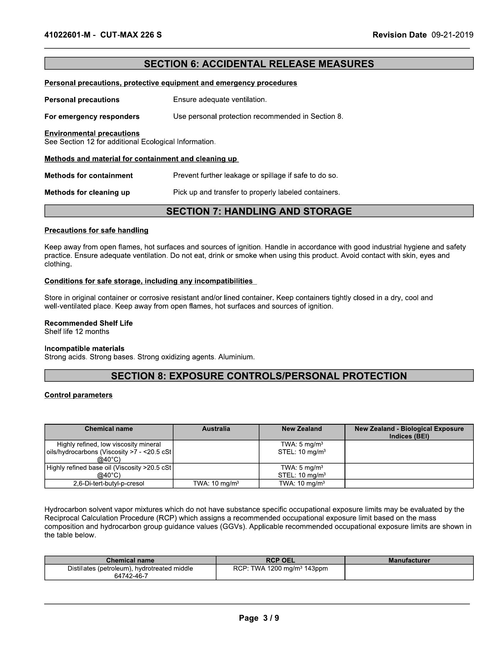 information on storage, safe handling and disposal.
