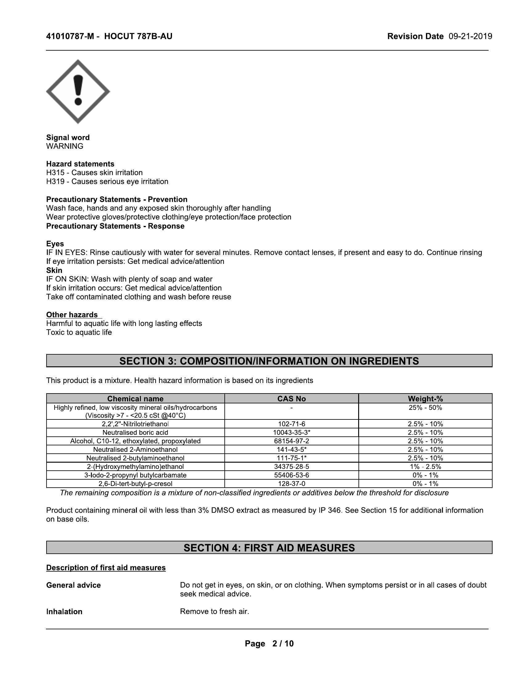 coolants exclusive to Houghton. HOCUTĀ® 787 B-au