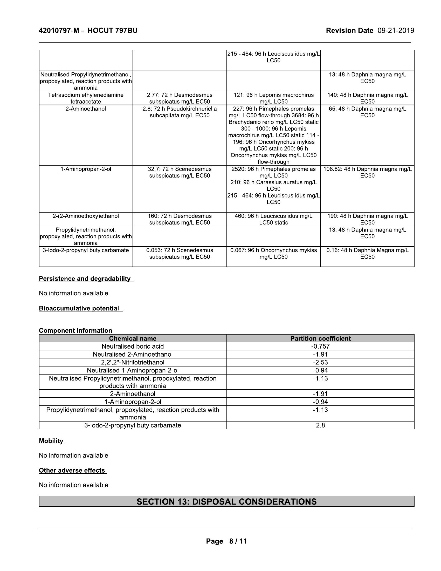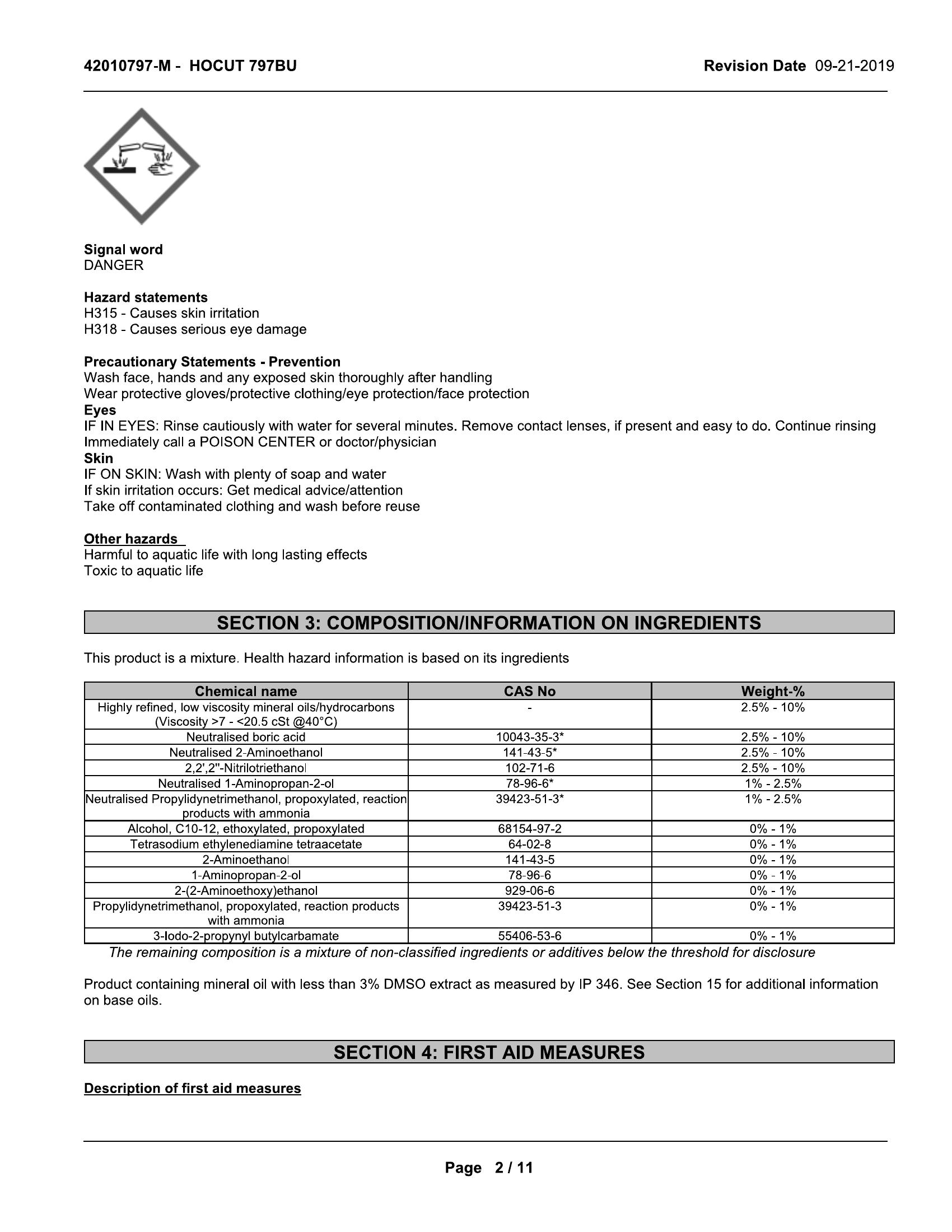 applications. HOCUTĀ® 797 BU is a uniquely bioresistant, versatile, semi-synthetic coolant for