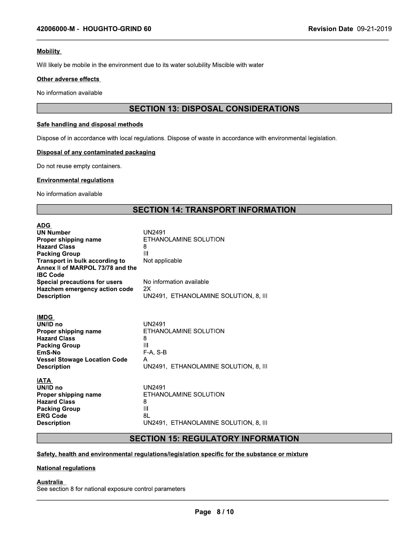 information on storage, safe handling and disposal.