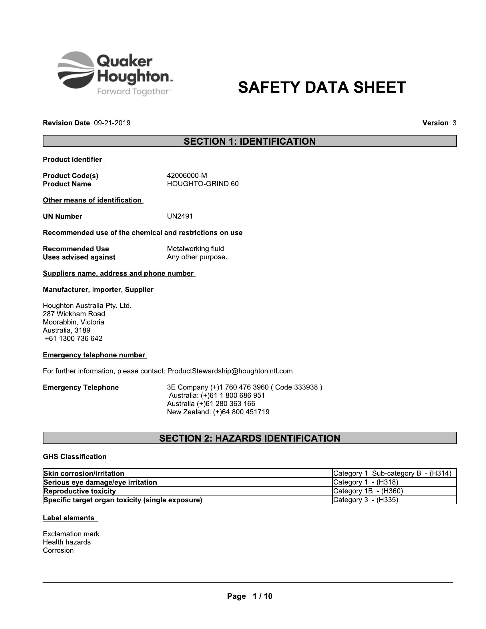 HOUGHTO-GRIND® 60 is a synthetic chemical
