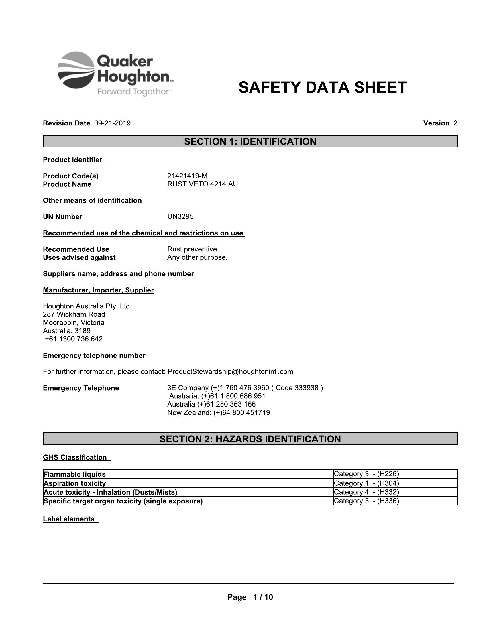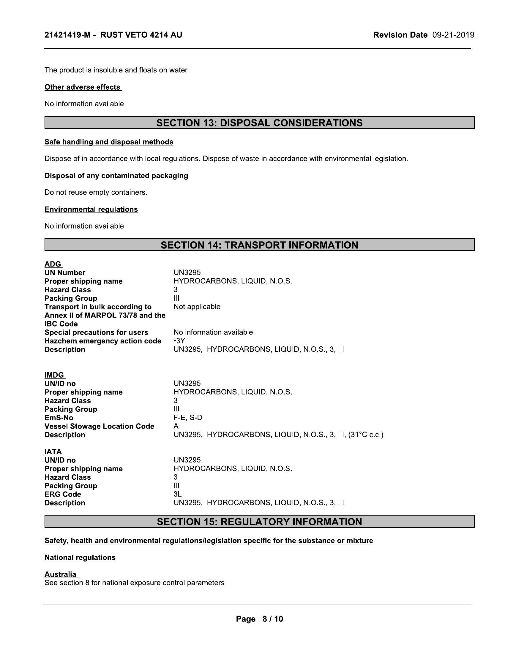 If high flash point product required, RUST VETO® 4214