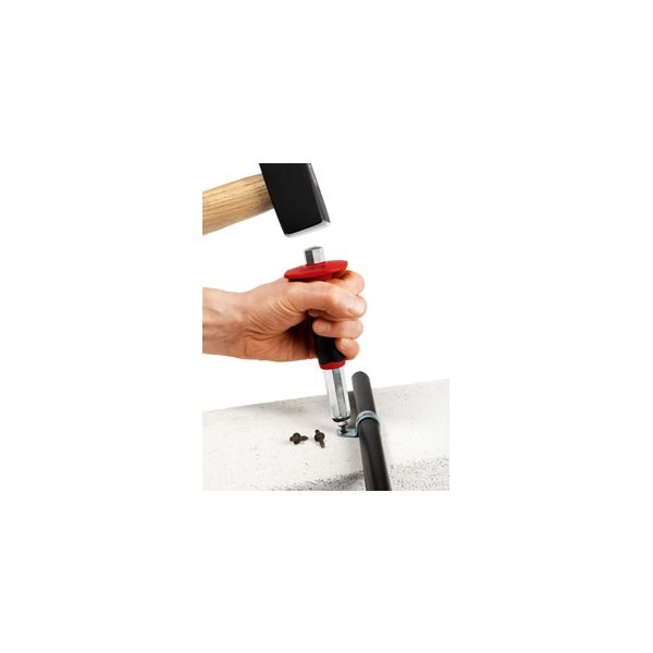 Knocks impact nails for conduit fixing clips or fixing bands directly into concrete (without pre-drilling)