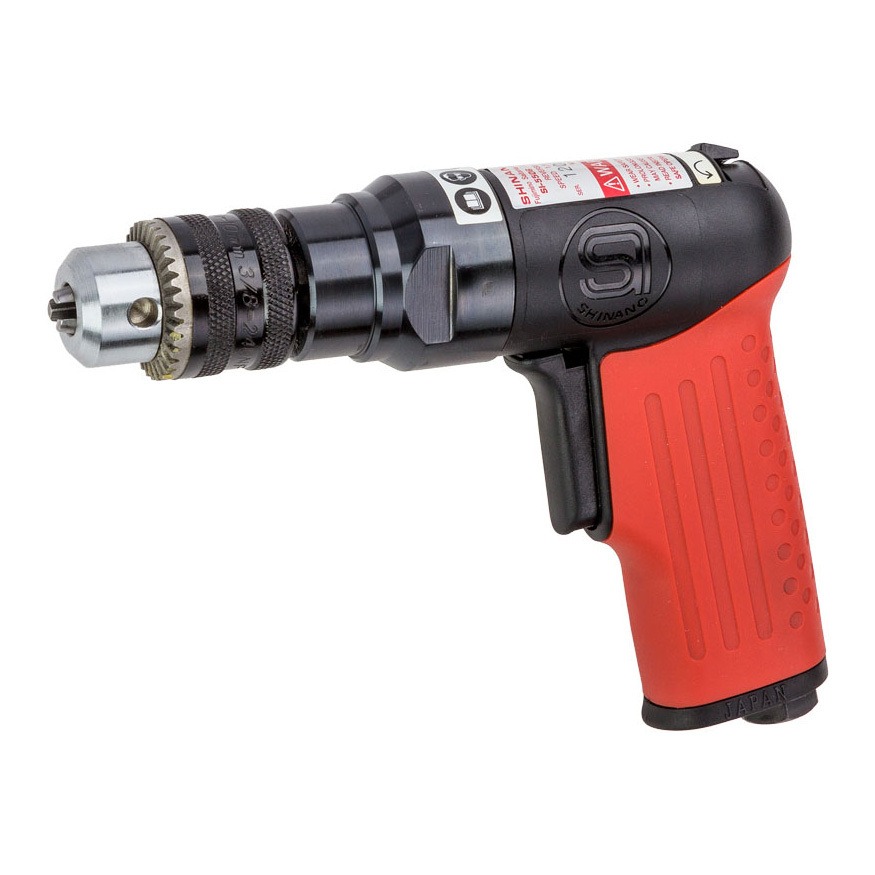 • Super light weight & compact design • 3/8″ capacity geared pistol grip drill • Solid composite body with moulded rubber grip • Comfortable grip with reduced vibration • Single hand operation of reverse lever Length: 115 mm Height: 135 mm Chuck Size: 10 mm Drilling Cap: 10 mm Spindle Size: 3/8 x 24 UNF Free Speed: 1,700 RPM Weight: 0.60 Kg Noise Level: 80 DBA (91 Pwr) Vibration A: 1.9 m/s2 K: 0.6 m/s2 Av Air Cons.: 2.4 CFM Output: 146 Watts