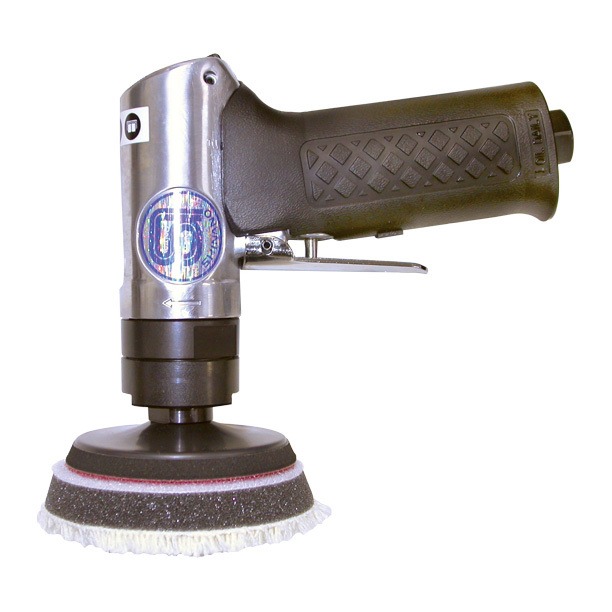 • Geared polisher with 3″ Velcro pad • Light and compact body • Designed for polishing and buffing • Either a wool buff or sponge buff can be used Length: 111 mm Height: 147 mm Pad Size: 75 mm Spindle Size: M6 × 1 Free Speed: 4,500 RPM Weight: 0.64 Kg Noise Level: 83 DBA (94 Pwr) Vibration A: 1.4 m/s2 K: 0.6 m/s2 Av Air Cons.: 2.5 CFM Output: 203 Watts