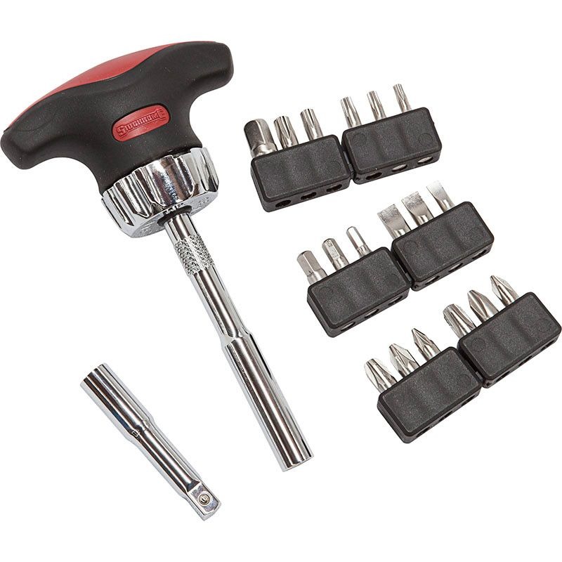 SIDCHROME – SCREWDRIVER, RATCHETING 21PCE W/BITS, T-HANDLE