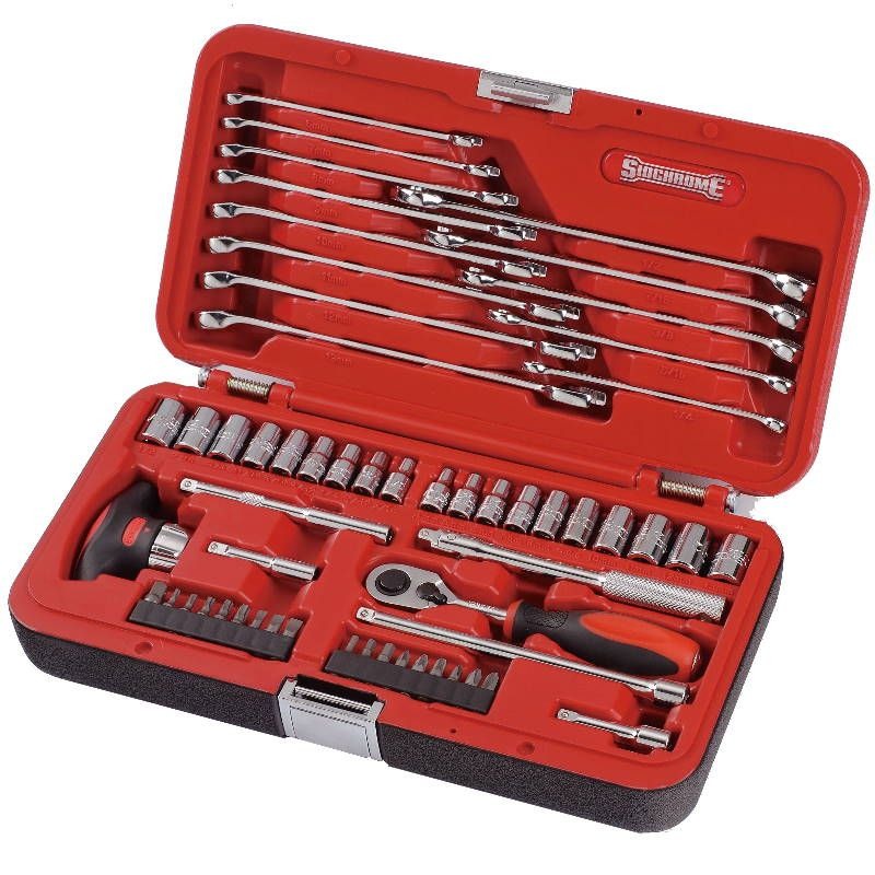 SIDCHROME – SPANNER/SOCKET SET, 57 PIECE METRIC/AF, 1/4in DRIVE