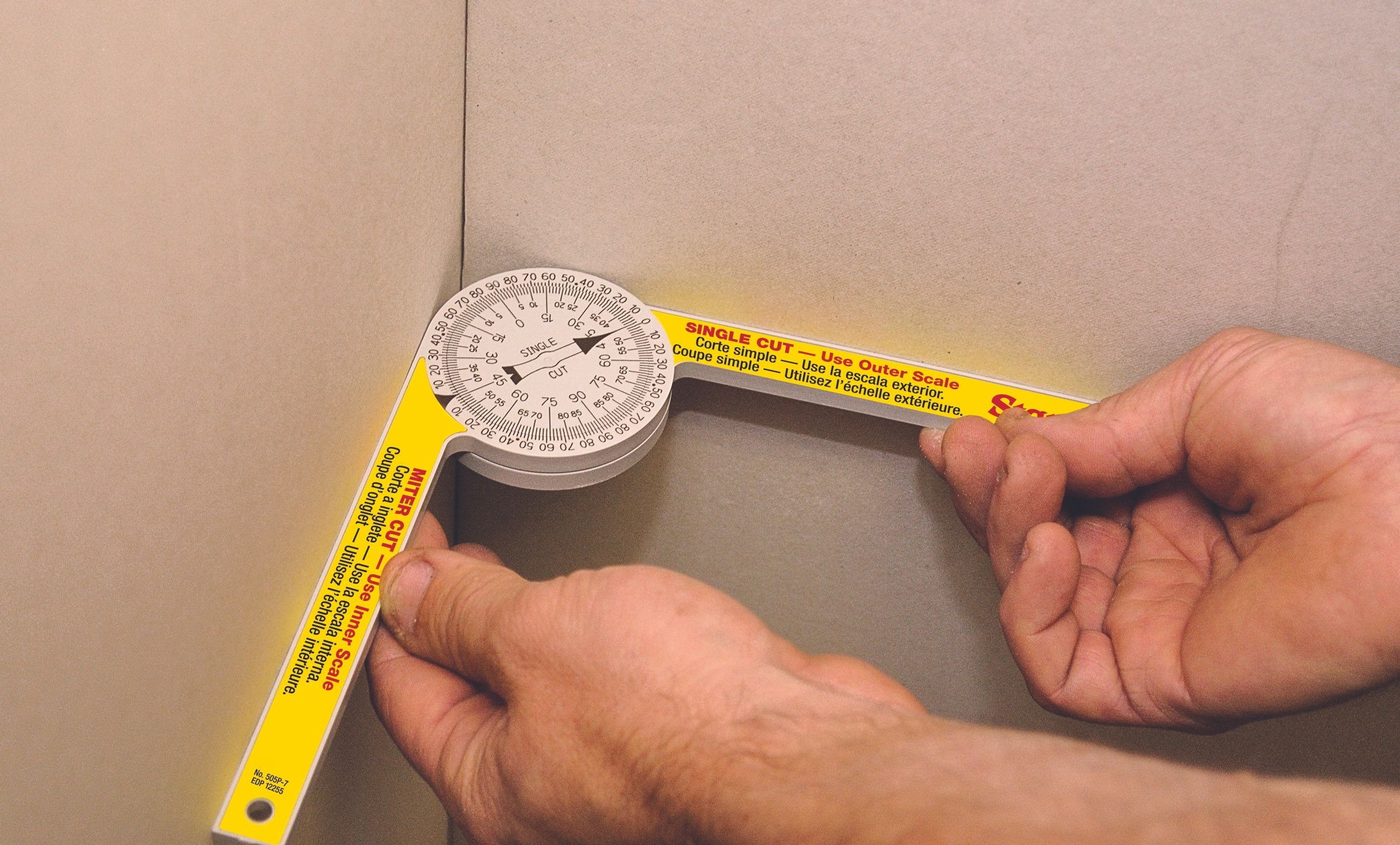 Miter cut scale transfers readings directly to the miter saw for miter joints