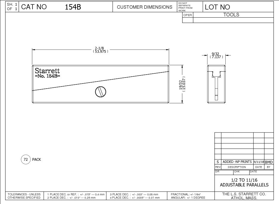 All parallels are 9/32″ (7mm) thick