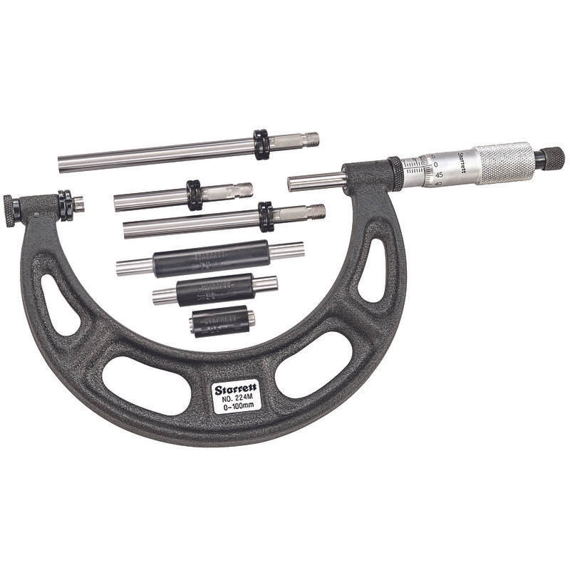 Each micrometer is equipped with a series of easily interchangeable anvils, providing the full range in steps of 25mm with a single micrometer