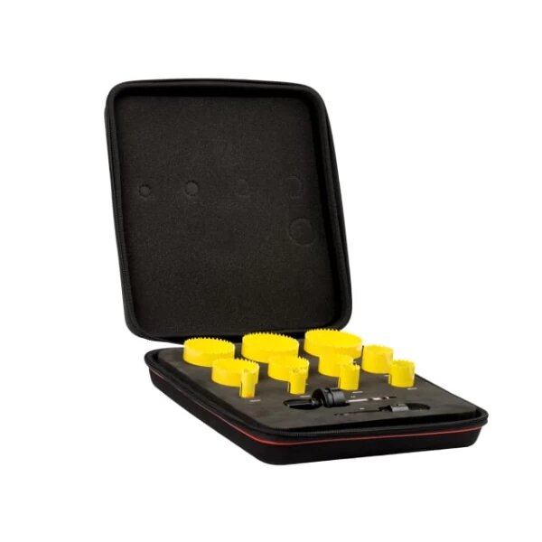 11 x Bi-Metal Holesaws: 16, 19, 22, 29, 35, 38, 44, 51, 57, 65 & 68mm.2 x Arbors: A1 & A2 Arbors.