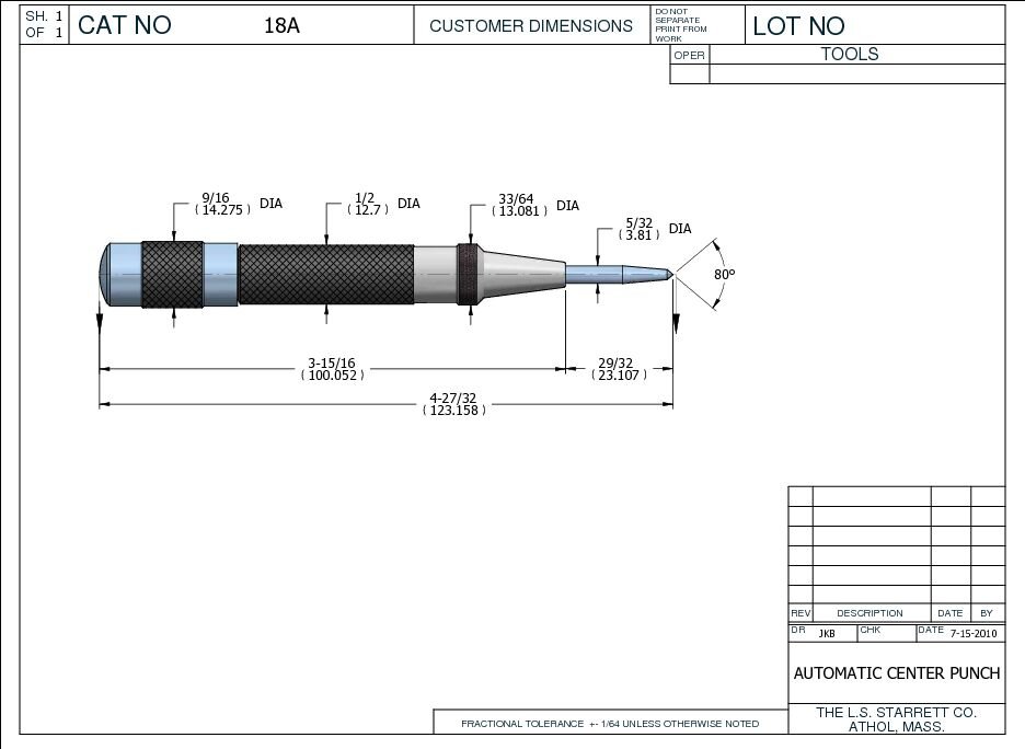 Steel Automatic Center Punch, 5″/125mm Length, 9/16″/14mm Punch Diameter