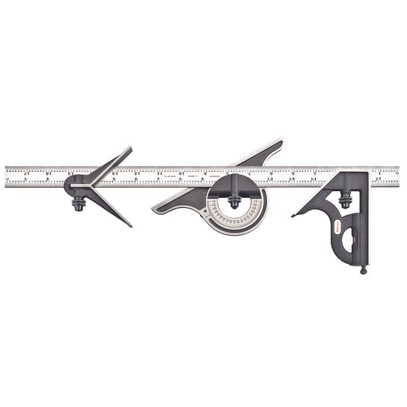 Starrett Combination Set w/Cast Iron Head 18in 4R Grad 9-18-4R 18″ Combination Set with Square, Center and Non-reversible Protractor Head and Blade