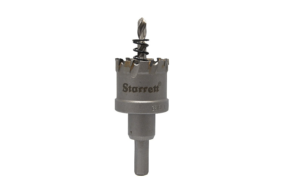 The Carbide Tipped Deep Cut (CTD) Hole Saw is the perfect solution for repeated intensive drilling in mild and stainless steel, cast iron, aluminium and copper of all thicknesses up to and including 25mm (1”). The Starrett CTD hole saws feature three different angles ground onto the cutting face of each tooth on the saw. This 3-ply tooth grind delivers a fast cut, minimal snag when the saw begins the cut, efficient swarf removal minimising heat build-up and maximum saw life.