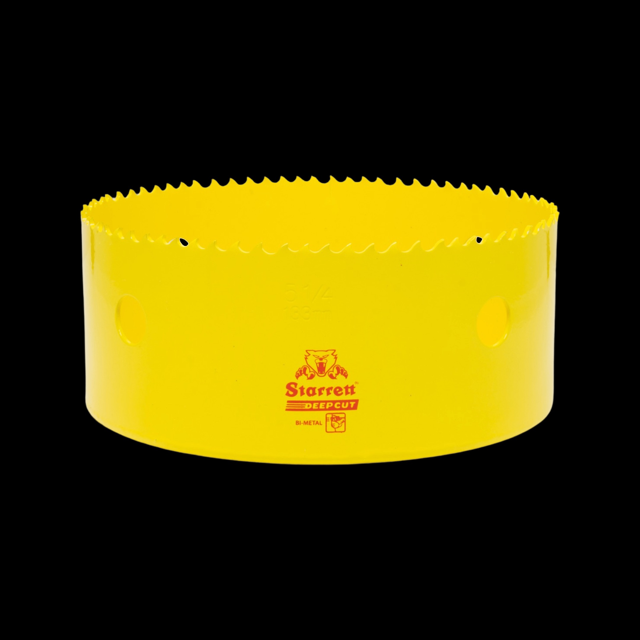 Teeth per Inch (25mm): 4-6 Diameter: 133mm (5.1/4”) Cutting Depth: 51mm (2”) Box: Yes Colour: Yellow Body Material: Steel Teeth Type: HSS Arbor Type: A2-E or A10-E Thread Size: 5/8 – 18