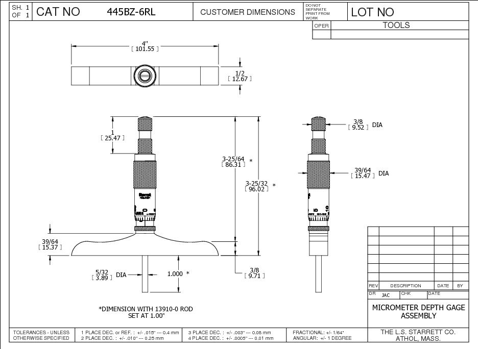 Accuracy (in):Mic head +/-.0001″; Rods +/-.0002″