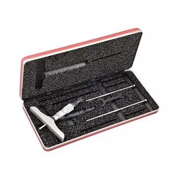 Micrometer Depth Gage, Ratchet Thimble, 0-75mm Range, 0.01mm