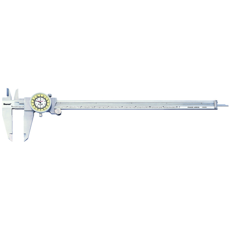 The Starrett 1202F Series Fractional Dial Calipers show measurements as fractions on the yellow outer scale with 1/64th inch graduation, and decimal measurements on the white inner scale with 1/100th inch graduations. This series provides quick, accurate measurement of outside dimensions, inside dimensions, and depth. This series features 0-12″ fractional range. 12”, Grad. In Fractions, in Fitted Case