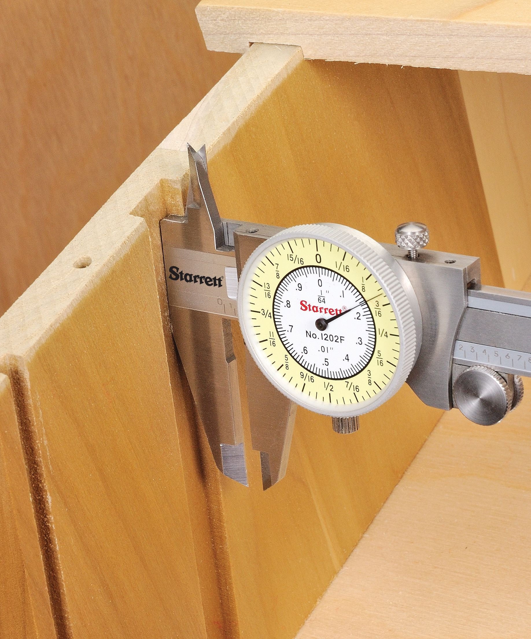 1/64″ graduations on the yellow outer scale, and .01″ on the white inner scale