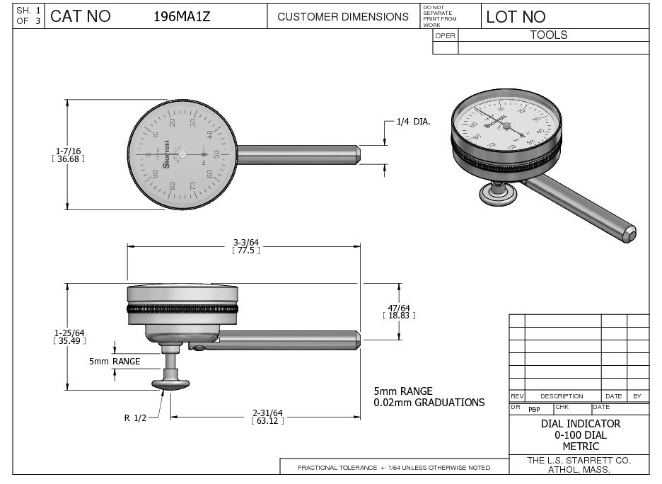 Starrett Dial Test Indicator 0-2 Back Plunger W/points/adapter/attachments Case 196MA1Z Universal Back Plunger Dial Indicator