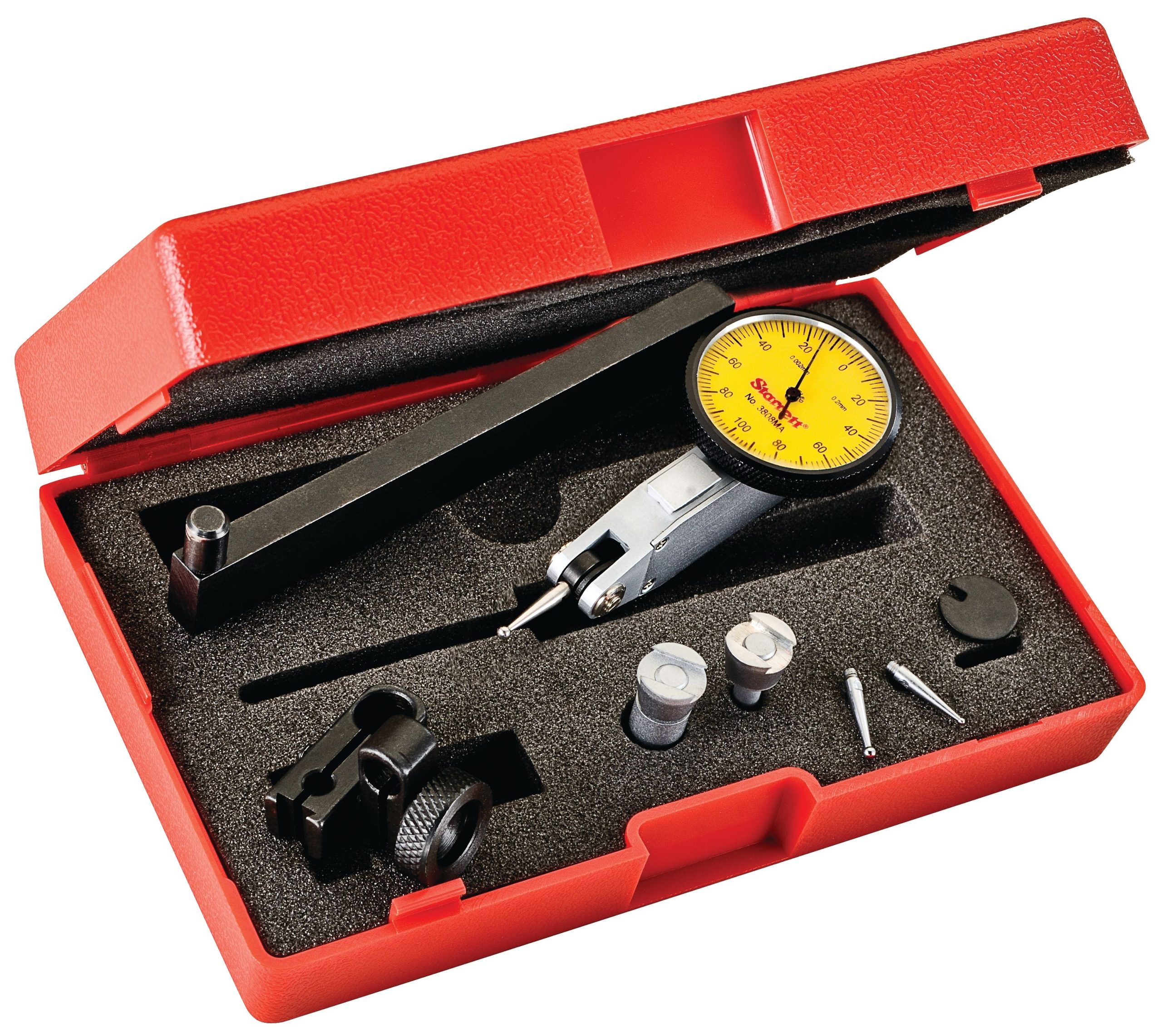 Dial Test Indicator with Dovetail, 0.2mm Range, 0-100-0 1-1/4″ Dial Face, 0.002mm Graduations, with Accessories, Case