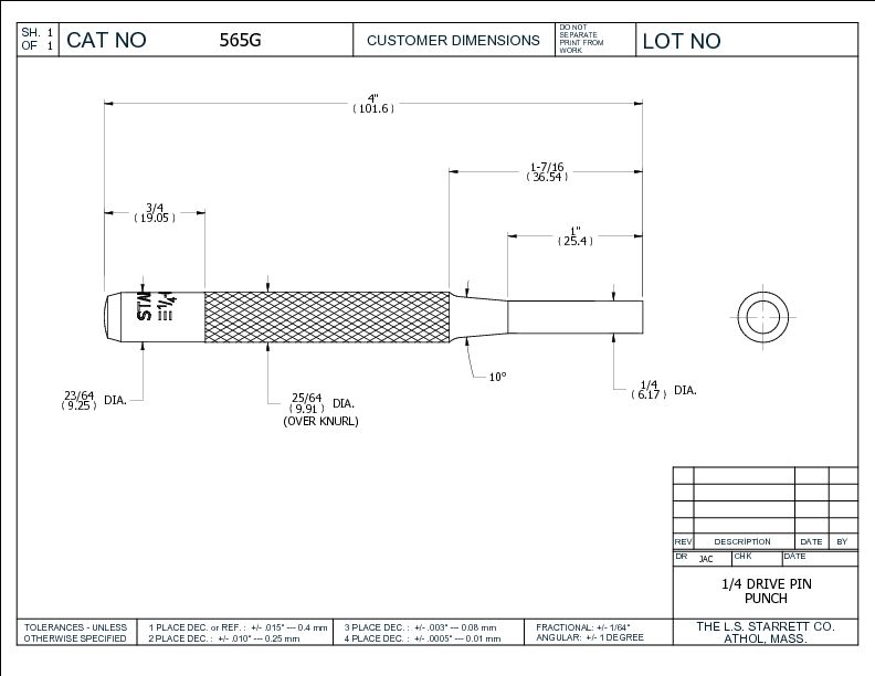 Punch Diameter (in):1/4″