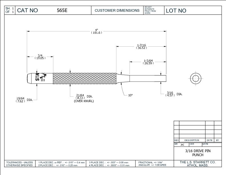 Steel Drive Pin Punch, 4″/100mm Length, 3/16″/5mm Punch Diameter