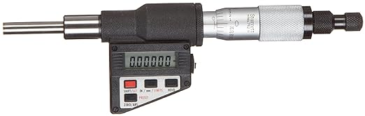 The micrometer’s electronic microprocessor can hold measurements at any position, convert to absolute value, set a temporary zero position, and return to a true zero reading. It also has a preset to install a reading at any position. The micrometer has Statistical Process Control (SPC) data output to transmit results to a computer or external device. The output jack transmits SPC results to a computer through an interface cable (sold separately). The micrometer includes, and is powered by, a single CR2450 lithium cell battery.