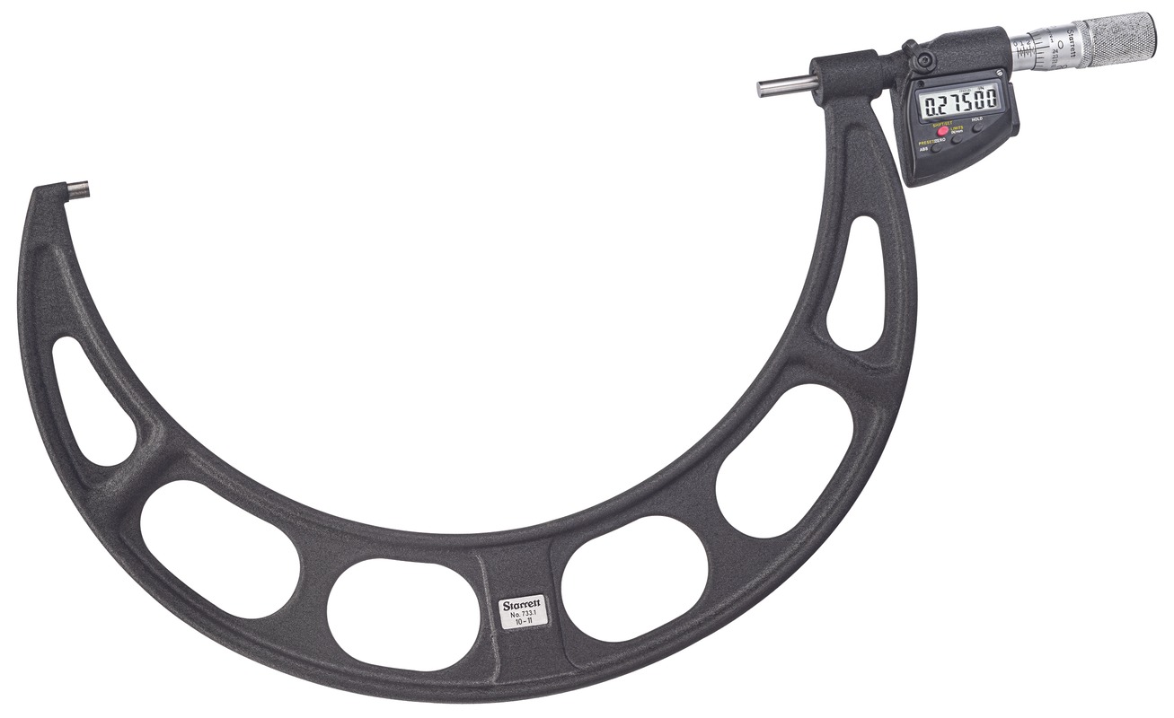 LCD Outside Micrometer, Friction Thimble, Carbide Anvil, SPC Output, .0001″, 10-11″ Range