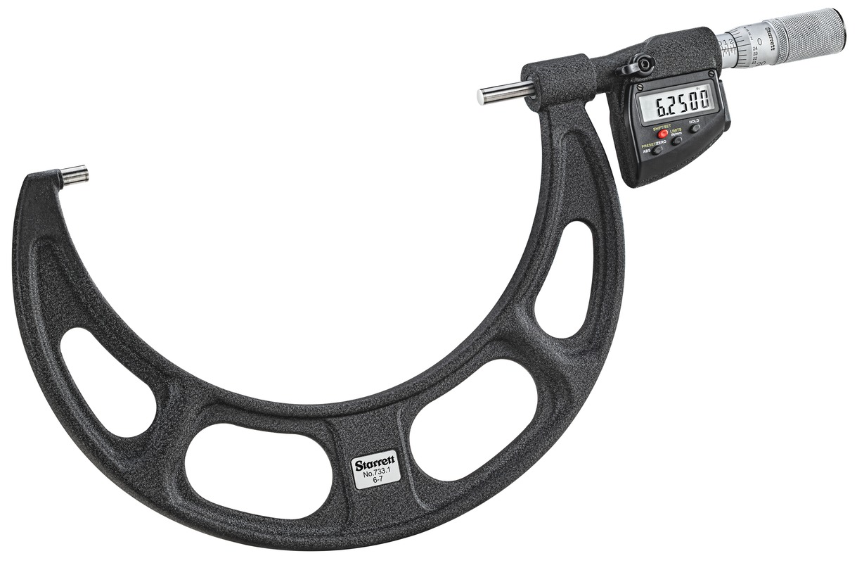 LCD Outside Micrometer, Friction Thimble, Carbide Anvil, SPC Output, .0001″, 6-7″ Range
