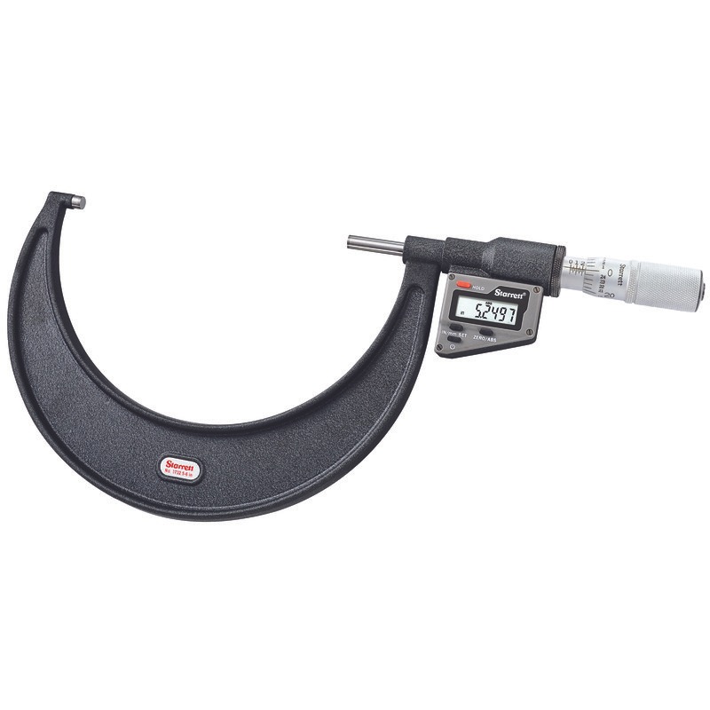 LCD Outside Micrometer, Friction Thimble, Carbide Anvil, .00005″ Res., 5-6″ Range