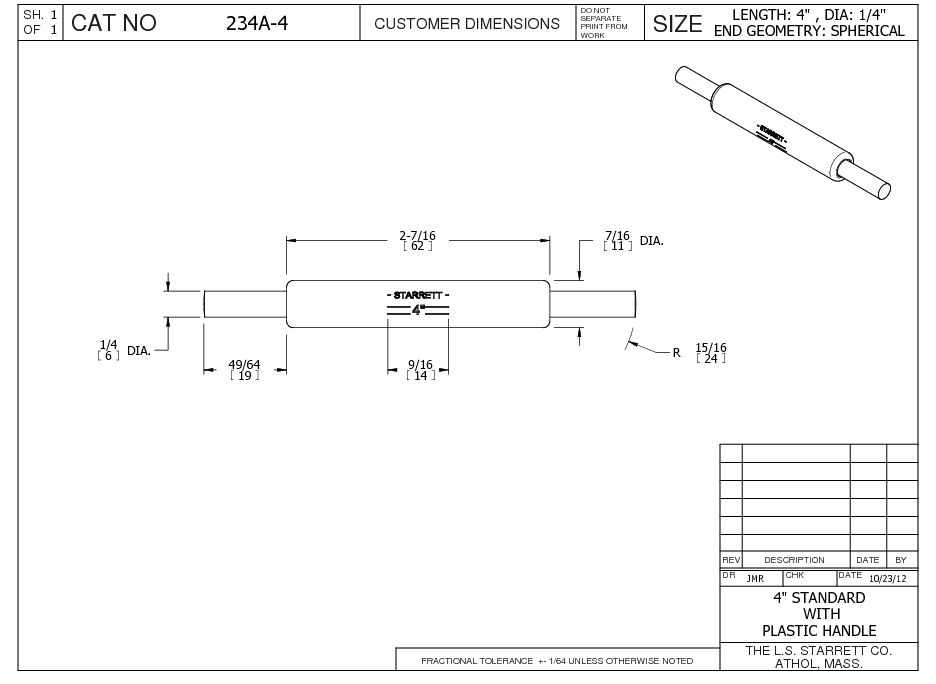 Starrett – End Measuring Rod 4in W/ Rubber Handle