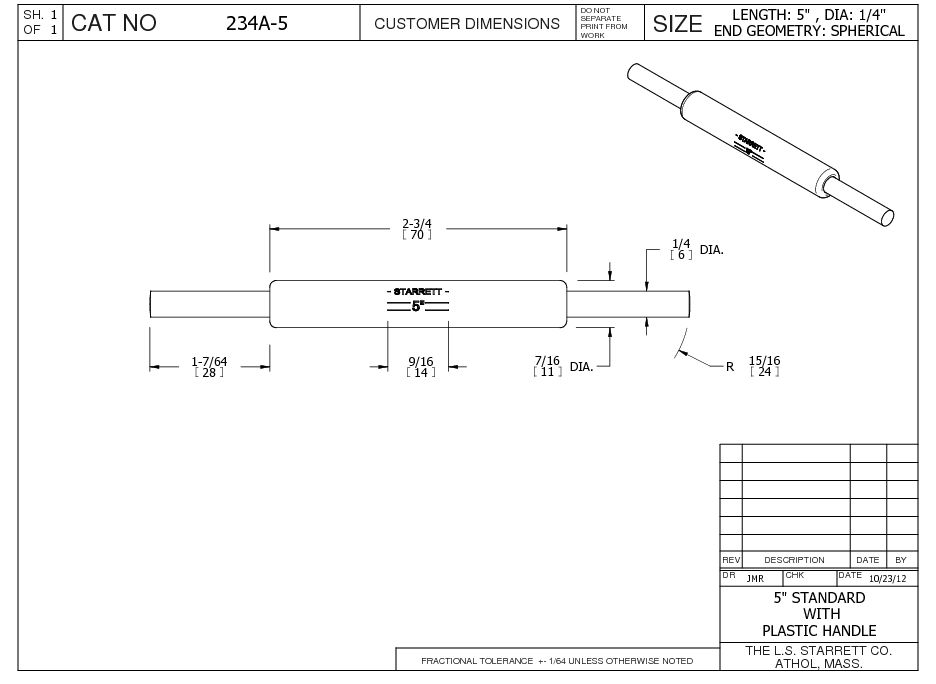 End Measuring Rod with Insulated Handle and Spherical Ends, 5″ Length