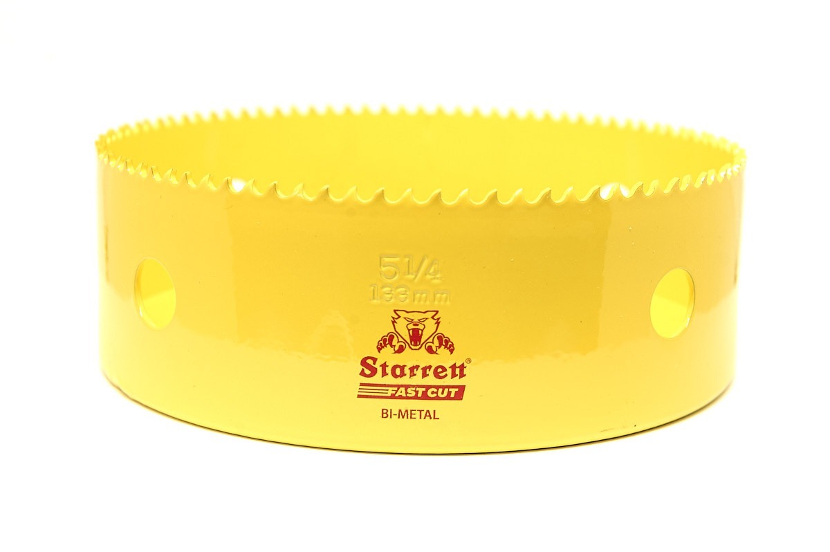 New tooth material with extra cobalt for enhanced heat and wear resistance – improving the product life. The 5.5 TPI positive rake tooth form provides less torque for a smoother, faster cut in all materials. 30% extra gullet volume for better material penetration. Ideal for 3mm stainless steel, mild steel sheet and tubes and other materials with a thickness of up to 13mm (1/2”). Size range: 14mm – 210mm (9/16″ – 8.9/32″). 41mm (1.5/8”) hole saw depth.