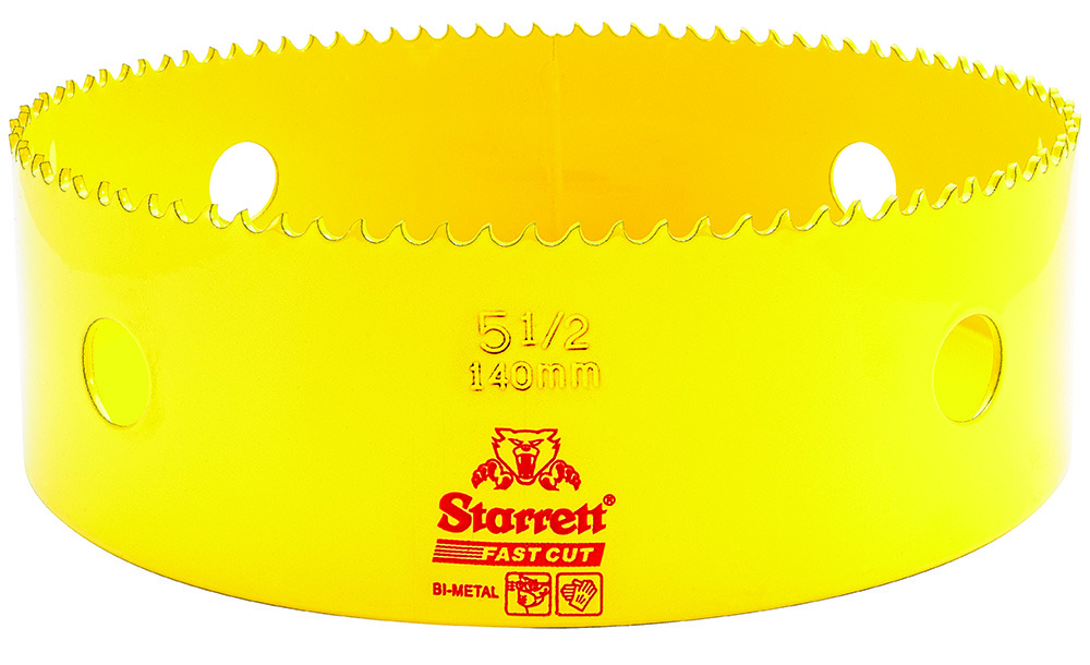 New tooth material with extra cobalt for enhanced heat and wear resistance – improving the product life. The 5.5 TPI positive rake tooth form provides less torque for a smoother, faster cut in all materials. 30% extra gullet volume for better material penetration. Ideal for 3mm stainless steel, mild steel sheet and tubes and other materials with a thickness of up to 13mm (1/2”). Size range: 14mm – 210mm (9/16″ – 8.9/32″). 41mm (1.5/8”) hole saw depth.