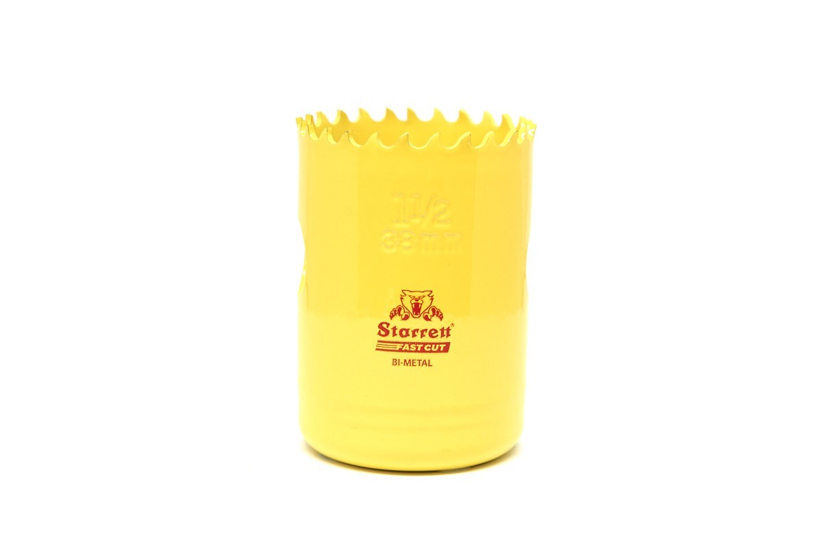 Teeth per Inch (25mm): 5.5 Diameter: 38mm (1.1/2”) Cutting Depth: 41mm (1.5/8”) Box: Yes Colour: Yellow Body Material: Steel Teeth Type: Extra Cobalt HSS Arbor Type: A2, A10, A17-38 Locking Arbor, A2-1 SDS Plus, A3 & A3-4 Ulti-Mate or A6 & A6-3 Kwik Change Thread Size: 5/8 – 18 Pilot Drill: A014C Core Ejector: KA8-2