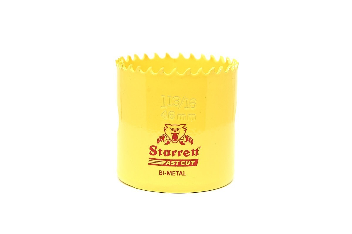 New tooth material with extra cobalt for enhanced heat and wear resistance – improving the product life. The 5.5 TPI positive rake tooth form provides less torque for a smoother, faster cut in all materials. 30% extra gullet volume for better material penetration. Ideal for 3mm stainless steel, mild steel sheet and tubes and other materials with a thickness of up to 13mm (1/2”). Size range: 14mm – 210mm (9/16″ – 8.9/32″). 41mm (1.5/8”) hole saw depth.