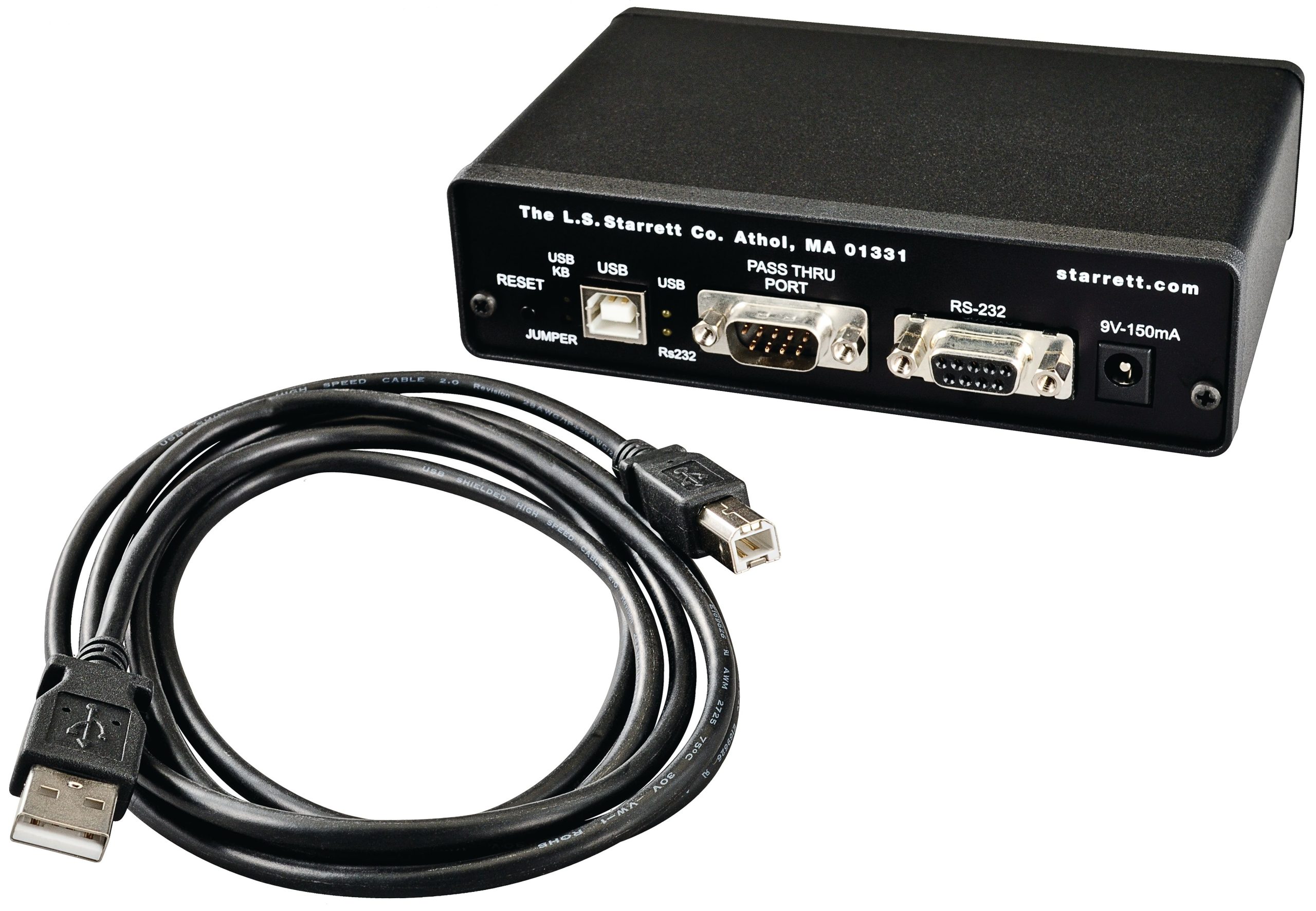 Interface is through USB and USB keyboard outputs, as well RS232 ports