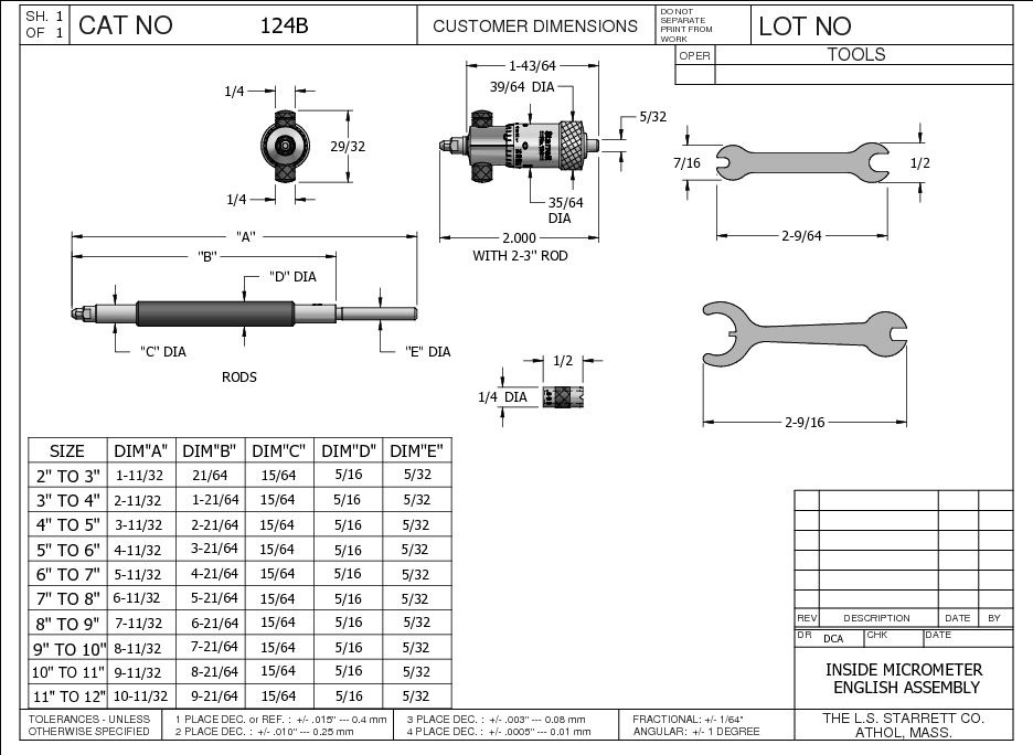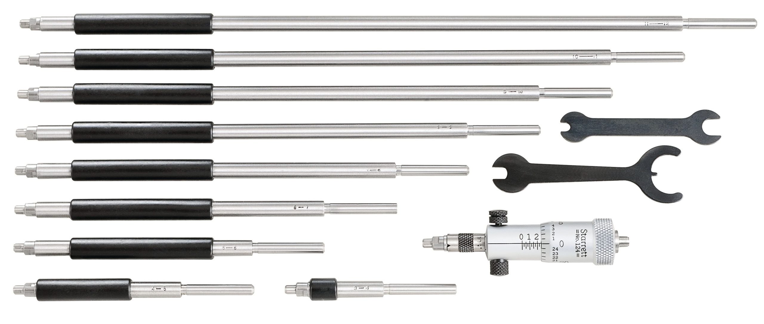 Solid -Rod Inside Micrometer Set with Case, 2-12″ Range, .001″