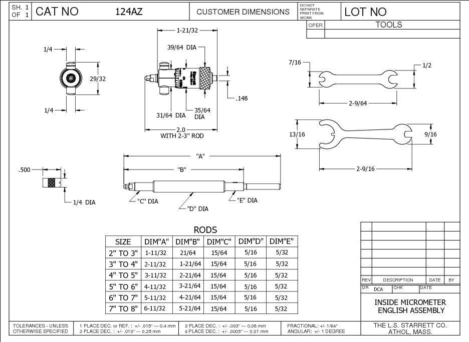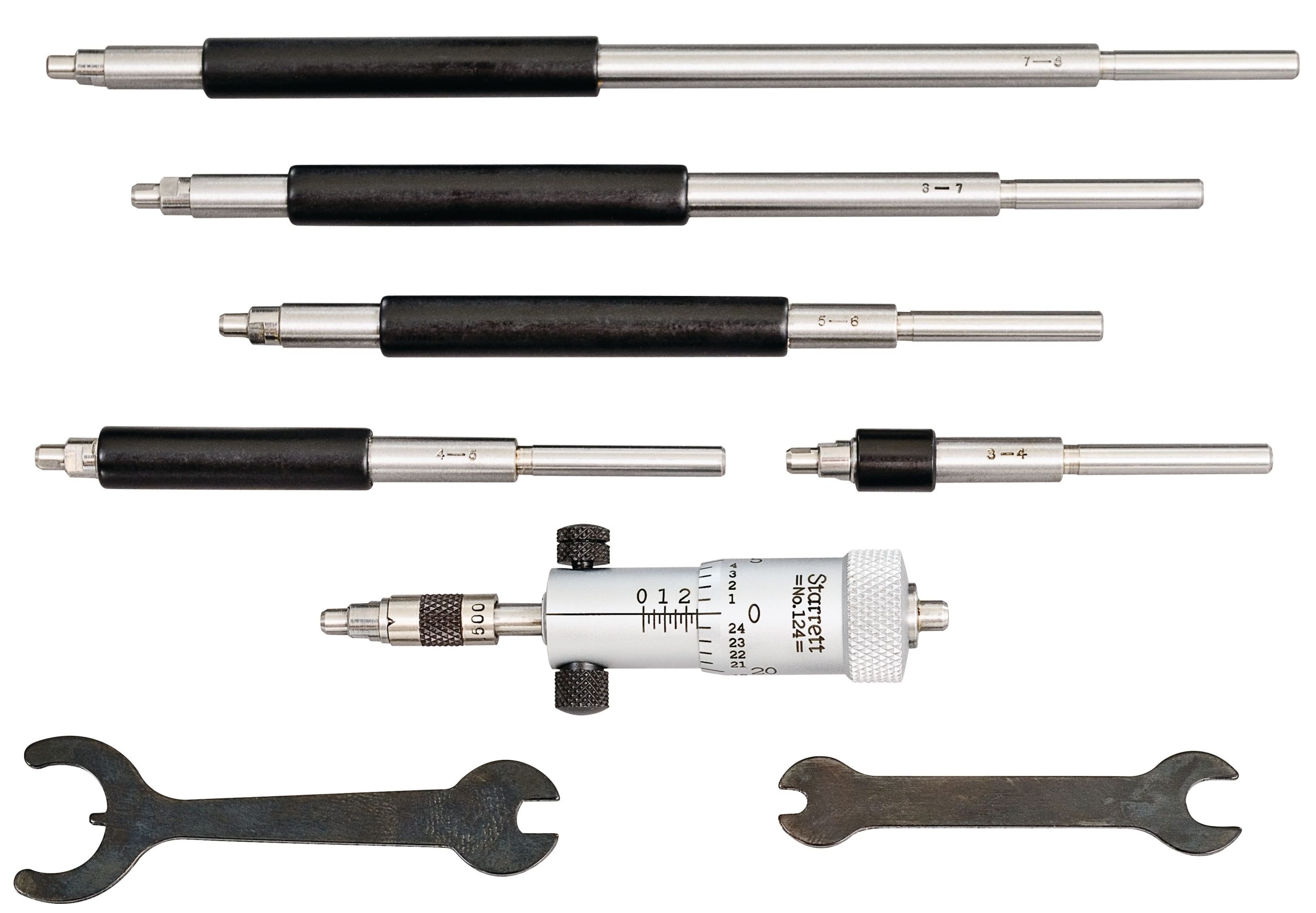 Solid -Rod Inside Micrometer Set with Case, 2-8″ Range, .001″