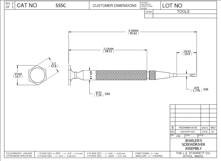 Jewelers Screwdriver .070in (1.8mm) Blade
