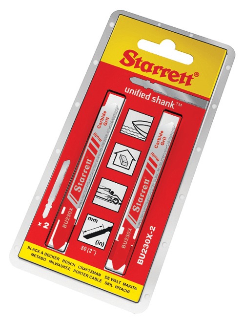 Starrett Bi-Metal Unique™ Saw Technology, with unified shank™ Jigsaw Blades will fit in virtually all jigsaw machines. Our Unique™ Blades feature 170% more weld contact area than standard bi-metal blades through the Unique™ solid-state diffusion bonding process. This ensures exceptionally strong teeth, combined with the multiple cutting edges and split chip advantage, ensuring that Starrett Jigsaw Blades typically last 25% longer than directly competing products.