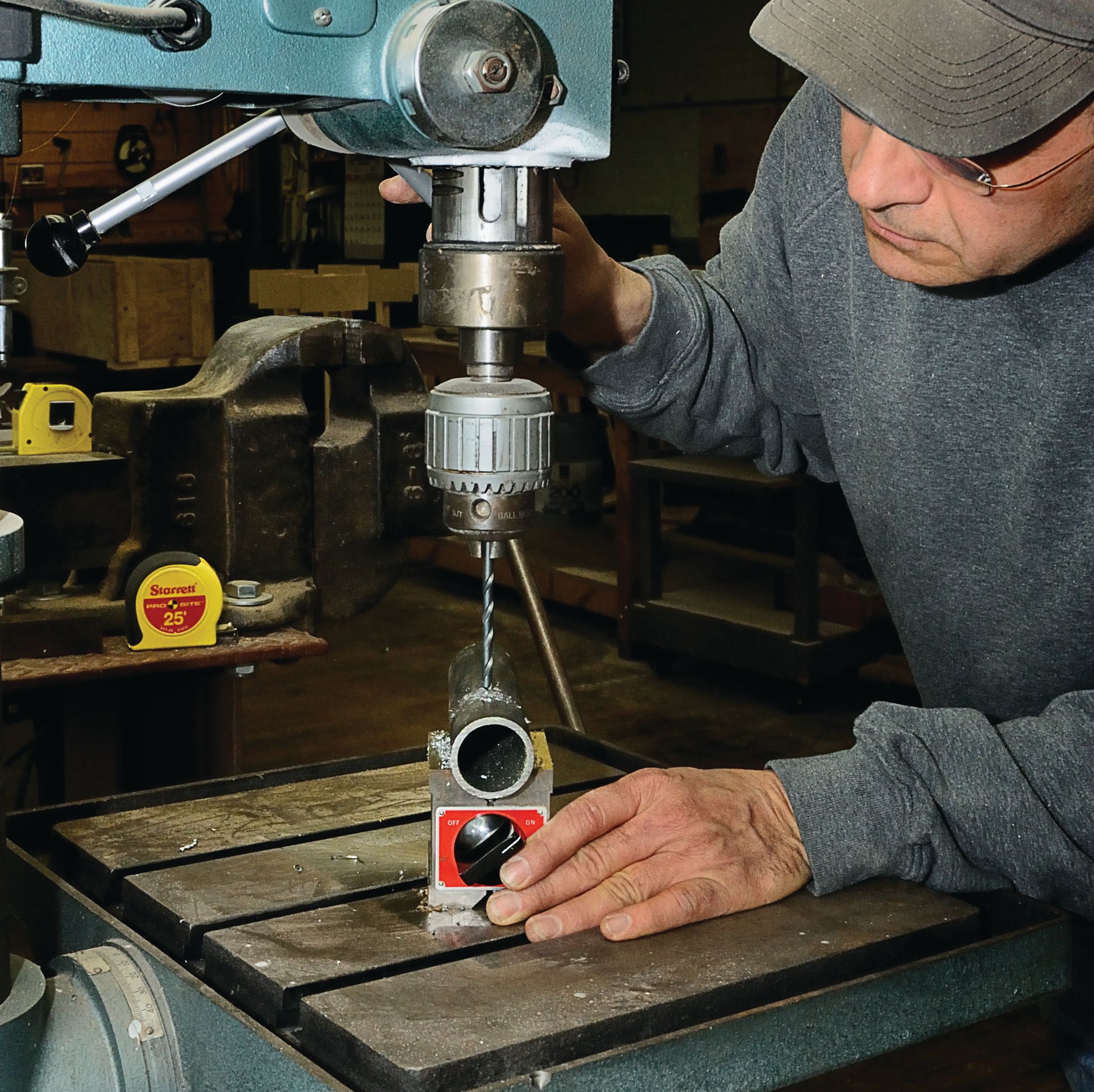 Two precision vees will hold round stock sizes from 1/4 to 1-3/4″ (6.4-44mm) diameters