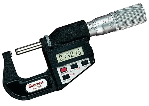 Home » Shop » MEASUREMENT » Precision Measuring Tools > Precision Hand Tools » Precision Measuring Tools > Precision Hand Tools > Micrometers » Starrett Micrometer Elec. Dig. W/output 0-1in (0-25mm) Carbide Faces Rounded Anvil 788XFL Electronic Micrometer